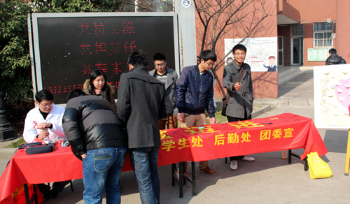 2013年12月1日是第26个世界艾滋病日。为更好落实和执行党和国家的艾滋病防治政策,提高大家艾滋病防治知识,增强艾滋病防治意识。天博体育 后勤处联合学生处、团委于12月2日中午,在院食堂前联合举办了预防艾滋病主题宣传签名活动。