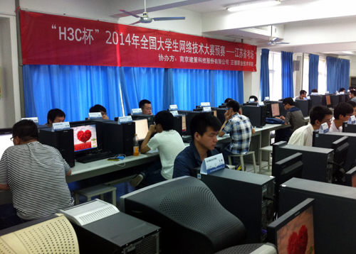 2014年5月14日下午,“H3C”杯2014年全国大学生网络技术大赛——江苏赛区预赛在天博体育 成功举办。省内有近40所高校共计146位考生参加了此次比赛。天博体育 派出了包括在不久前举办的江苏省职业技能大赛中获得了一等奖的电子与信息技术系黄磊同学在内的4位选手。