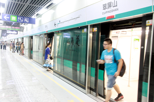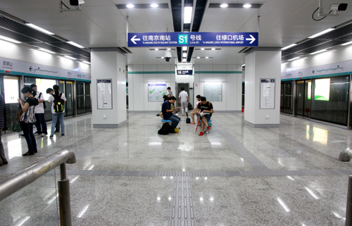 连接南京南站和南京禄口国际机场的南京地铁机场线又称南京地铁S1线,全程35.8千米,途经天博体育 所在的江宁经济开发区、秣陵工业区、禄口新城。共设置8座车站,其中5座地下站、3座高架站;列车采用6节编组的B型鼓型列车,天博体育 门口的翠屏山站为地下站,是南京南站发车后的第二站。列车颜色为清新可人的宝石绿色。最高时速达到100公里。远远看去,飞驰而过的南京机场线地铁列车如同一股绿色旋风从南京南郊刮过。