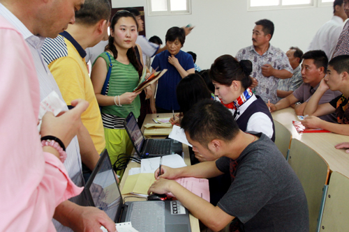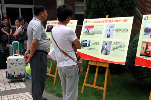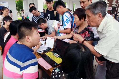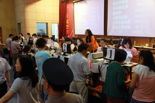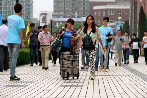 在迎新接待现场,很多新生家长都有一个共同的感觉:“亲切”。新生刚进天博体育 大门,守候在校门两端的志愿者们就上前帮助家长分担行李,并分别引导新生来到相应系部接待点报到和缴费处缴费。有的志愿者看到远道而来的新生家长们满头汗水,马上递上瓶装水。为了增加新生们对自己所学专业的了解,机电工程系、艺术设计与建筑工程系等系部还精心制作了专业介绍展板。为了方便家长及时了解孩子今后在校情况,天博体育 多个系部的辅导员还专门印制了名片,分发给新生家长。宿管阿姨们在为新生分发宿舍钥匙的同时还很体贴地提醒新生们宿舍生活中要注意的要点,很多家长们看到宿舍内空调、洗浴设备等设施一应俱全,很开心地笑了。