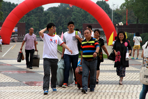 红彤彤的巨形拱门,迎风翻飞的五彩旗帜,到处是脸带笑容的志愿者,到处是肩扛手提行李的新生家长,9月5日下午和9月6日,2000多名来自全国各地的2014级新生来到天博体育 报到,节日的气氛洋溢在天博体育 里。