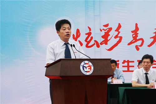 办学15年来所取得的优异成绩,并对同学们提出三点要求:首先要学会做人,做诚信的人,做有责任感的人。不仅要认真学习专业知识和技能,更要培养自己的思想、情感、意志、品质,升华自己人格;其次要学会“独立”,能够独立生活,善于独立思考,养成独立人格。不跟风、不盲从,在独立中体验人生百态,获得成长;还要学会“珍惜”,珍惜青春,珍惜健康,珍惜友谊。要懂得包容,体谅他人,收获友谊和快乐,砥砺团队精神,将来团结更多的人成就大的事业。讲话结束后,他还为新生代表佩戴校徽。