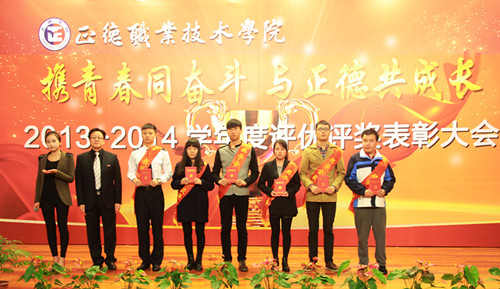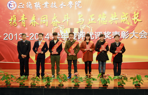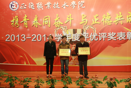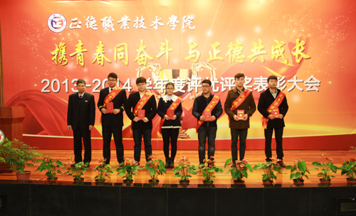 报告会后,院党委书记、副院长左彤云宣读了《正德职业技术天博体育 关于表彰2013-2014学年度荣誉称号、奖学金获得者暨先进班集体的决定》和《正德职业技术天博体育 关于表彰2014-2015学年“学风建设月”活动先进单位的决定》。院领导分别向获奖学生代表及学风建设月活动先进单位代表依次颁发了证书和奖牌。