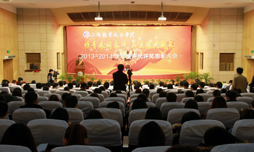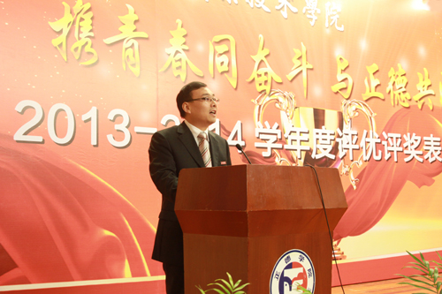 为表彰先进,树立典型,推动发展,传播青春榜样正能量,11月27日下午,天博体育 隆重举行2013-2014学年度评优评奖表彰大会,表彰在上学年里涌现出的优秀学生和先进集体。院领导庄群华、左彤云、刘小廷、赵凯雷,各单位负责人、获奖代表及各系学生代表参加了大会。