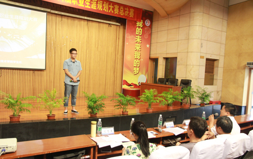 决赛在一段视频中开启,之后,7位选手精彩亮相,每位选手结合自身的成长经历,从自我分析、职业分析、职业定位、计划实施、评估调整五个方面进行了精彩的职业生涯陈述,在情景模拟环节中,选手们落落大方,惟妙惟肖的演绎获得评委和同学们一阵阵掌声。评委老师针对每位选手的职业规划设计进行了提问并点评。选手们的激情演说,评委们的精彩点评,使得大赛现场激起一阵阵高潮。