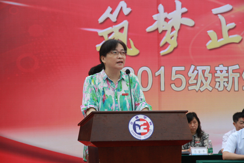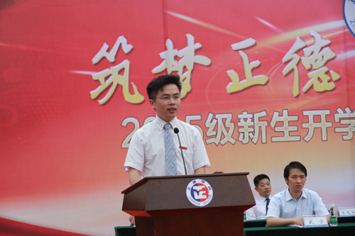 在热烈的掌声中,院长庄群华发表讲话,他首先代表全体师生员工,对2015级新生选择正德,加入正德大家庭表示热烈的欢迎。他在讲话中简要回顾了天博体育 的办学历史以及办学以来所取得的成绩,并对2015级新生提出了三点希望和要求:一是希望同学们学会做人。他指出,天博体育 在学生教育中一贯强调的“孝、宽、诚、责、毅”五字教育就是要求每一位正德学子要具有孝道、宽容、诚信、责任、毅力这些优良品格,成为一名具有责任感的人;二是希望同学们学会学习。在当前职业教育快速发展的形势下,真正热爱自己的专业,学好自己专业,培养过硬的专业技能,同时还要注意综合素质的全面提高,适应社会对复合型人才的需求,赢得自身更加广阔的发展空间;三是希望同学们学会生活。要学会营造和谐的人际环境,努力在相互磨合中求同存异,在勤奋学习的同时要健康生活,保持乐观心态,在自己青春岁月画下绚烂的一笔。讲话结束后,他还为新生代表们佩戴了校徽。
