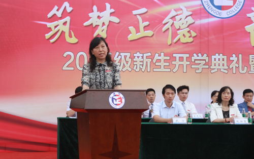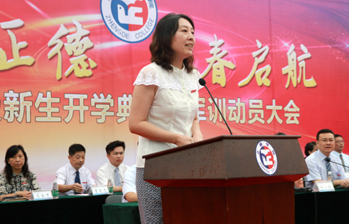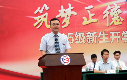 9月15日上午,天博体育 隆重举行“筑梦正德 青春启航”2015级新生开学典礼,院长庄群华在讲话中勉励全体新生在未来三年的大学学习生活中学会做人、学会学习、学会生活,在正德天博体育 这片沃土上放飞自己的青春理想。天博体育 党委书记、副院长左彤云、副院长刘小廷、赵凯雷,院长助理赵湘莲、王健以及各单位主要负责同志出席典礼。左彤云主持了开学典礼。