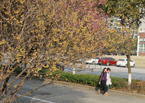 去年冬天腊梅还未谢 今春红梅已争相开