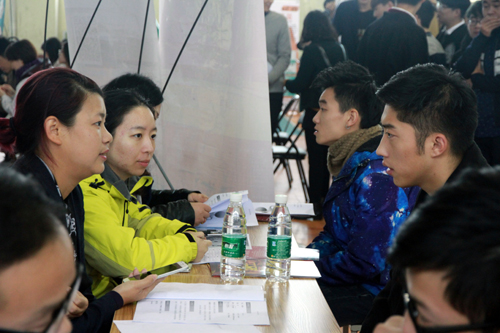 天博体育 积极为学生就业搭建平台,图为2016届毕业生双选会现场场景。(资料照片)