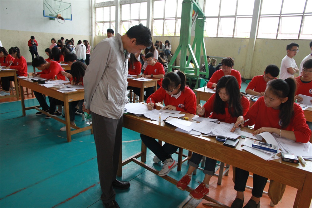 院长庄群华在ERP比赛现场观看同学们的技能比拼
