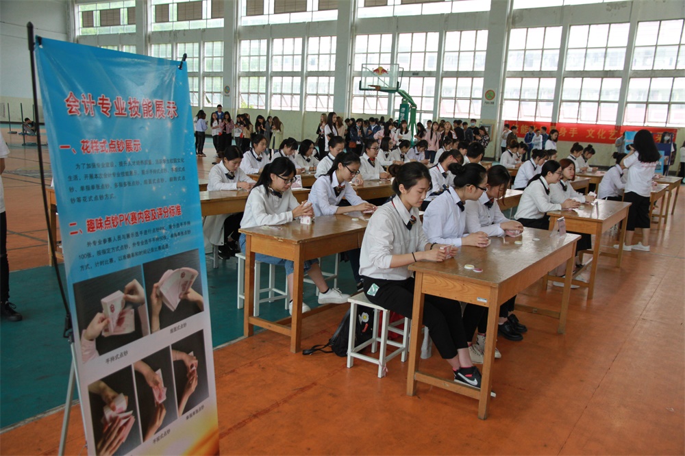 比赛现场,该系的同学们给大家展示了高标准、高要求的专业技能,不同专业、不同比赛各有特色。“趣味点钞”比赛,中职会计班同学们的花式点钞,11秒100张点钞券的速度,吸引了全院师生的眼球,更是引得全院师生纷纷加入到比赛中来;会计凭证填制比赛由15级会计师班学生参与,通过准确、规范、快速的会计凭证填制,展示了会计师班学生会计基本核算技能的熟练程序。