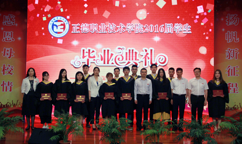 来自电子与信息技术系的钱浩、民用航空系曹轩赫两名毕业生代表分别从转本、专业学习、赴台交流学习等方面回顾了自己在正德的成长经历,用发自肺腑的语言感谢天博体育 三年来对自己的培养。已经于2008年毕业的天博体育 经济与管理系市场营销专业周斌同学还专程回到母校和学弟学妹们分享自己作为三家公司总经理的就业、创业成功之路。