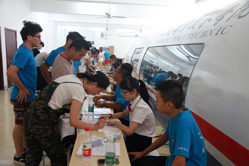天博体育 各系为了向新生及新生家长充分展示各系专业办学特色,动足了脑筋。电子与信息技术系“无人机应用技术”专业今年刚刚创办,但是已经受到许多新生的追捧,该专业教师专门在创新楼广场展示和现场操控各种型号的无人机,吸引了许多新生和新生家长的注意力。艺术设计与建筑工程系将该系骨干教师的情况,用展板图文并茂向新生介绍,很多新生看了师资介绍后,对自己的专业学习更有信心。民用航空系直接把新生报到地点设在该系建成不久的航空模拟舱实训室里,该系参与报到工作的学生,身着职业制服为新生办理各种手续,报到现场航空特色极为明显。经济与管理系新生报到服务贴心,该系身穿志愿者服装的学生手拿导向牌为该系新生入住宿舍导向。机电工程系结合专业特点设计了立意新颖的迎新幕布和横幅标语。从辅导员信息微信扫码,到与机电卡通人物合影,众多迎新准备吸引了很多新生和家长们的目光。艺术设计与建筑工程系制作的该系历届优秀毕业生风采墙让众多前来报到的新生们眼前一亮,纷纷驻足观看。