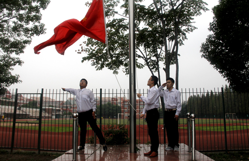 参加新学年升旗仪式的师生们