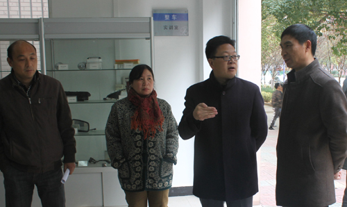 副院长赵凯雷一行正在检查汽车工程系整车实训室安全情况
