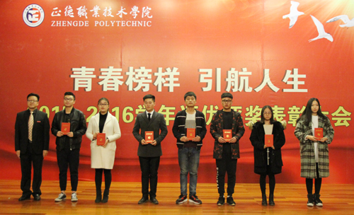 表彰大会在庄严的国歌声中拉开帷幕。随后,党委书记、副院长左彤云宣读了《正德职业技术天博体育 关于表彰2015-2016学年荣誉称号、奖学金获得者暨先进班集体的决定》 、《关于表彰2015-2016学年优良学风班级、优良学风宿舍的决定》。院领导分别向获奖学生、先进班集体代表依次颁发了证书和奖匾。