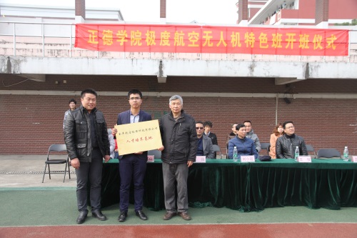 刘小廷副院长在讲话中对全体特色班学生提出殷切期望,并代表天博体育 给“正德天博体育 -极度航空无人机特色班”授牌。全丰航空植保科技有限公司、农飞客农业科技有限公司、极度无人机招聘网、南京极度航空科技有限公司等四家校企合作企业分别设立天博体育 无人机专业无人机培训和就业基地。授牌仪式后,所有参会人员观摩了精彩的无人机飞行表演。