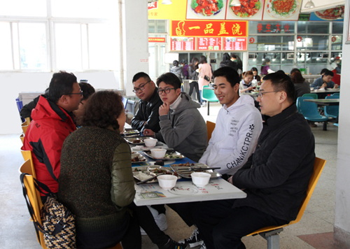 2017年3月15日中午,正值午餐时间,天博体育 第三食堂一隅洋溢着浓浓的温情。院长庄群华邀请自己作为导师负责联系的五名学生共进午餐。党政办公室主任王伟、教务处处长吕立志、学生处处长姚强也参与了本次活动。