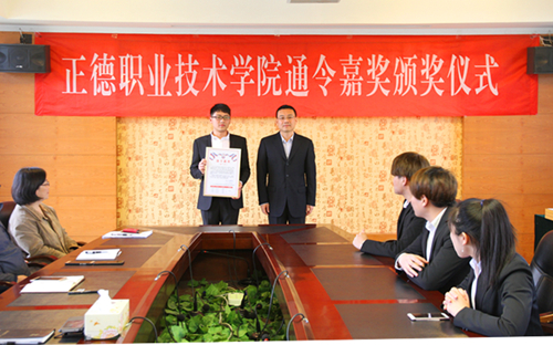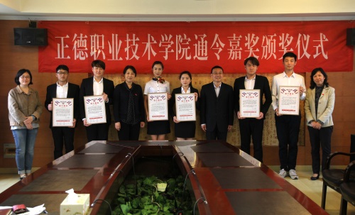 获得本次通令嘉奖的学生是在第十一届“江苏省大学生职业规划大赛”总决赛中荣获“职业规划之星”称号的朱倩文、王怡超同学、在2017年江苏省高职院校技能大赛市场营销技能项目比赛中荣获一等奖的王之亮、杨朕、张振坤、孟雪四名同学。