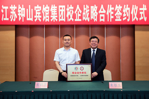 6月5日,天博体育 与钟山宾馆集团校企战略合作签约暨揭牌仪式在省会议中心举行。院长庄群华、钟山宾馆集团董事长狄嘉、总经理朱银生出席签约仪式并致辞。副院长刘小廷,党政办公室、民用航空系负责人以及实习学生代表等参加仪式。仪式由钟山宾馆集团副总经理李骘义主持。
