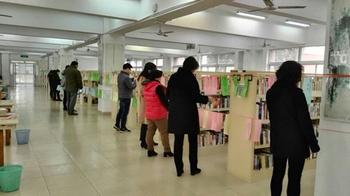 2018年元旦将至,为丰富天博体育 文化生活,活跃阅读氛围,师生同乐庆元旦,图书馆第六届“经典谜语快乐猜,浓浓书香迎新年”猜谜活动于2017年12月27日在图书馆读者服务部举行。上午8点30分,图书馆读者服务部已挂满了色彩斑斓的谜条,形成了一道亮丽的风景线。读者们纷至沓来,院领导、各部门领导、老师前来参与,顿时间图书馆里热闹非凡。