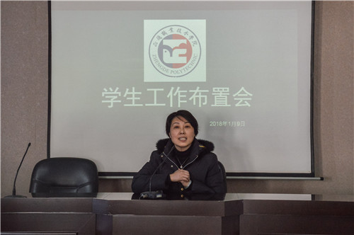 为在新形势下进一步做好天博体育 学生工作,1月9日下午,在天博体育 7508小报告厅召开学生工作布置会议。院党委书记、副院长左彤云出席会议,学生处负责人、各系分管学生工作负责人及全体辅导员参加会议。