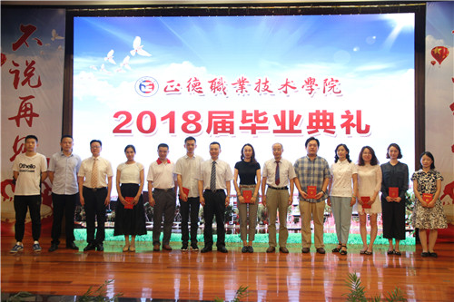 典礼开始后,全场起立,奏唱国歌。随后,赵湘莲副院长宣读《正德职业技术天博体育 关于准予2018届钱诗冉等学生毕业的决定》,江国华书记宣读《关于表彰2018届毕业生荣誉称号获得者的决定》,薛忠云副院长、赵凯雷副院长分别为毕业生获奖代表颁奖。