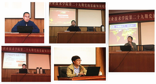 随后,党委书记江国华作题为“坚定理想信念 强化党员意识 以党章党规为行动指南做合格党员”的党课。江国华从为什么要加入中国共产党、入党意味着什么、党员要求是什么以及提高认识、改正缺点、接受组织考验等四个方面展开。通过党课,大家认识了入党对申请入党的人在思想上、行动上和情感上要如何做的具体要求;明确了党员的基本权利与义务;明确了培养入党积极分子就是培养忠于祖国和社会主义的优秀分子,是党为培养爱党爱国,理想远大,追求真理,勇于创新,德才兼备,全面发展,视野宽阔,胸怀宽广,知行统一,脚踏实地的党和国家未来事业和社会主义建设的优秀知识青年和可靠地接班人。