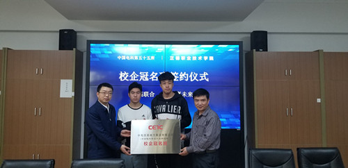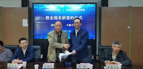 为凝聚天博体育 与社会力量,促进教育教学改革,拓宽学生实习和就业的渠道,进一步深入发挥校企双方的优势,天博体育 电子与信息技术系于4月9日举行了中国电子集团第五十五研究所(以下简称五十五所)校企合作冠名班签约挂牌仪式。院党委书记江国华,副院长薛忠云,五十五所人力资源部部长郑华、副部长刘俊杰,教务处处长王俊,校企合作办公室主任葛炜,学生处副处长陆松,该系主任王高山、副主任祝佳俊及部分教师代表、学生代表共同见证了此次签约仪式。