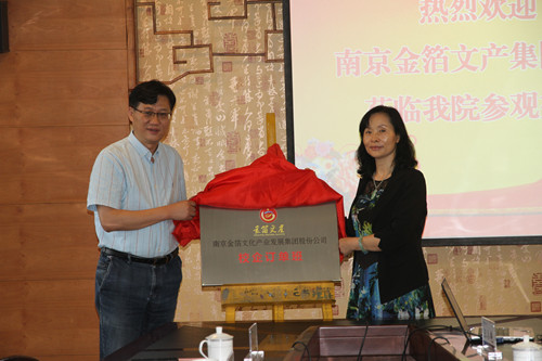 6月18日下午,天博体育 举行与南京金箔文化产业发展股份公司的校企合作订单班揭牌仪式。南京金箔文产集团股份公司董事长方司格,总裁王国峰,办公室主任方霞,金箔艺术团团长郭欣龙,艺术团艺术总监陈筱荣,以及天博体育 副院长赵湘莲,基础教育系主任杨卫东,校企合作办公室主任葛炜,幼儿发展与健康管理专业负责人汪小艳等9人参加揭牌仪式。