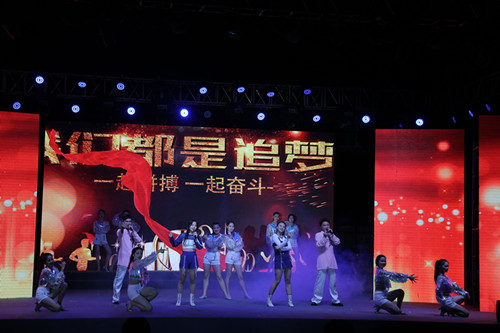 晚会第二篇章充满了青春气息和活力风采,《经典歌曲串烧》、街舞《FAME SHOW》、歌舞《我们都是追梦人》尽情释放新一代正德人的青春魅力。由四名大二同学带来的情景剧《校庆》则充分体现了全院师生对天博体育 明天更美好的深情祝福。