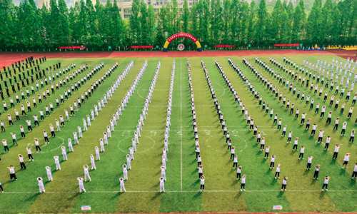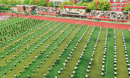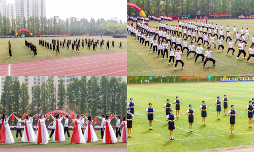 庄群华宣布运动会开幕后,紧接着进行了开幕式表演。本次运动会,各系积极响应天博体育 的倡导,动员组织学生,认真准备、精心排练了响扇健身舞、啦啦操、搏击操、武术、艺术操和礼仪操等各具特色的开幕式表演。各系的表演兼具了传统特色、运动元素和专业特点,基础教育系的同学们在表演结束时,用队形摆出了数字“100”,向建党100周年表达正德学子的深深祝福。各系同学们的精彩表现,将全场气氛推向高潮。特色展示表演之后,还进行了广播操和健身气功八段锦比赛。