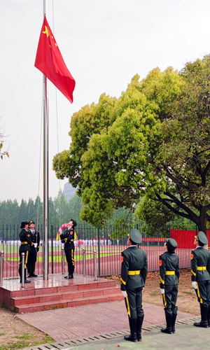 在庄严的升国旗仪式后,江爱华致开幕辞。运动员、裁判员代表分别向大会宣誓。