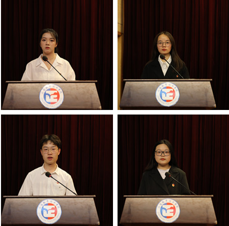 省优秀学生干部代表吴凡、省三好学生代表朱晨怡、省优秀共青团员代表卞鑫莉、省先进班集体获奖代表陈周泽英结合自身经历介绍了在正德天博体育 的奋斗历程,抒发了立志学习技能、成就出彩人生的远大志向,与会的同学们听后备受鼓舞。