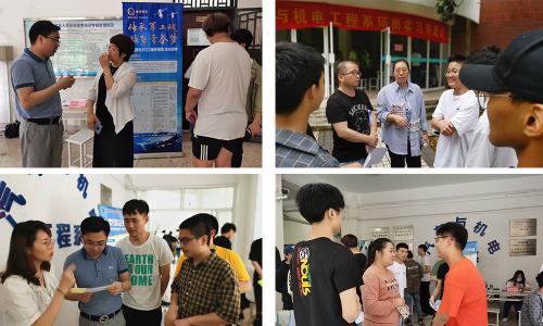 双选会上,江爱华、王俊、陆松对参会企业进行一一走访交流,对学生的就业意向、应聘情况进行了了解。