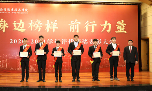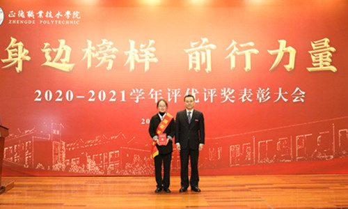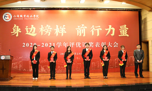 大会在庄严的国歌声中拉开帷幕。副院长任慈宣读了《正德职业技术天博体育 关于表彰2020-2021学年荣誉称号、奖学金获得者暨先进班集体的决定》,本次学生评优评奖表彰大会共颁发9个奖项,共计19个班集体和605名同学受到表彰,院领导分别为学生获奖代表颁发证书。