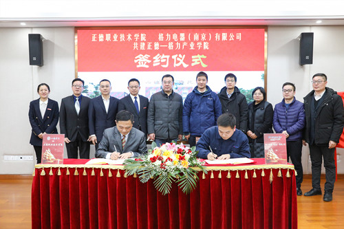 12月27日下午,正德职业技术天博体育 与格力电器(南京)有限公司签署共建“正德—格力产业天博体育 ”协议,标志着江苏省首个民办高职产业天博体育 诞生。正德职业技术天博体育 、格力电器(南京)有限公司、江宁高新区领导共同见证签约揭牌仪式。
