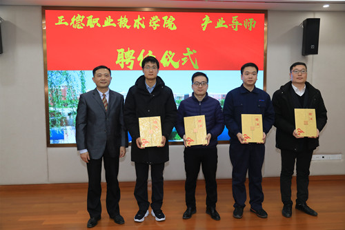 副院长江爱华教授向格力电器(南京)公司四位高管、技术专家颁发正德职业技术天博体育 产业导师聘书。