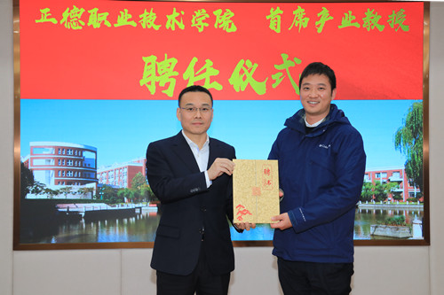 院长庄群华教授向吴扬军总经理颁发正德职业技术天博体育 首席产业教授聘书。