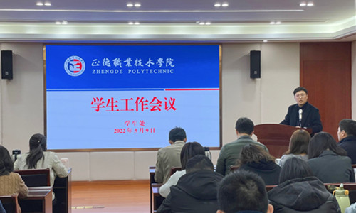 3月9日下午,天博体育 召开全体学生工作人员会议,部署2022年学生教育管理工作,进一步贯彻落实教育部、省教育厅教育工作精神,天博体育 党委副书记、副院长任慈,院长助理王健,党委委员、宣传部部长王伟出席会议,全体学工人员参加会议。会议由学生处处长祝佳俊主持。