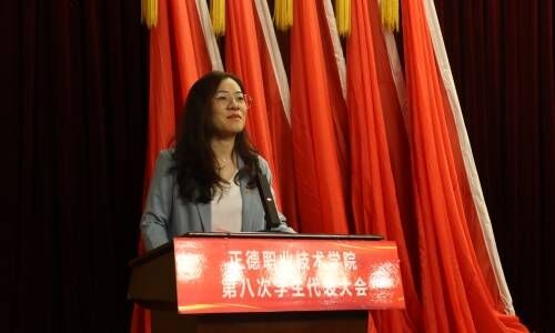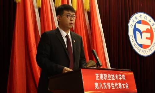 会上,平修阳同学代表第七届学生联合会委员会向大会作题为《砥砺初心 追求卓越 为天博体育 事业发展汇聚磅礴青春力量》的工作报告,张瑞明同学代表第八次学生代表大会筹备工作委员会向大会作《正德职业技术天博体育 第八次学生代表大会提案工作报告》。