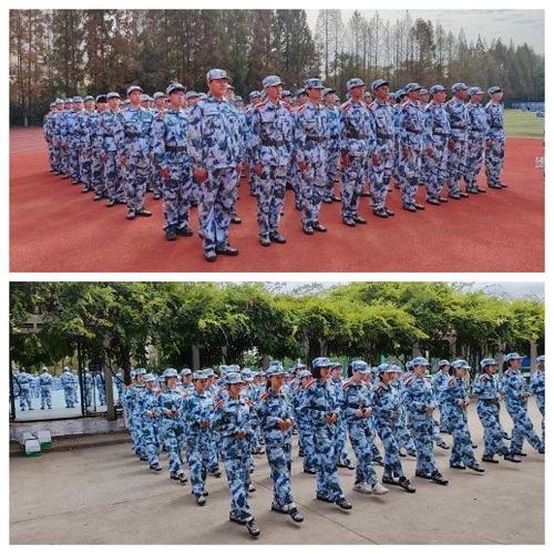 训练场上,2022级全体学生身着威严、整洁的迷彩服,跟着教官嘹亮的口号,动作整齐划一,身姿坚毅挺拔,口号震耳欲聋,展现正德学子蓬勃向上、锐意进取的青春朝气。