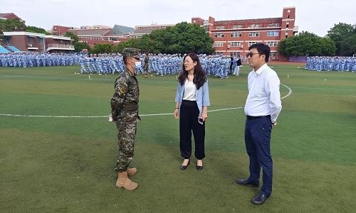 军训期间,天博体育 党委副书记、副院长任慈,各系负责人、各系党支部书记走进2022级新生群体,与新生亲切交流,关心关注新生的军训训练和学习生活,鼓励全体2022级新生坚定理想信念,厚植家国情怀,牢固树立国防意识。