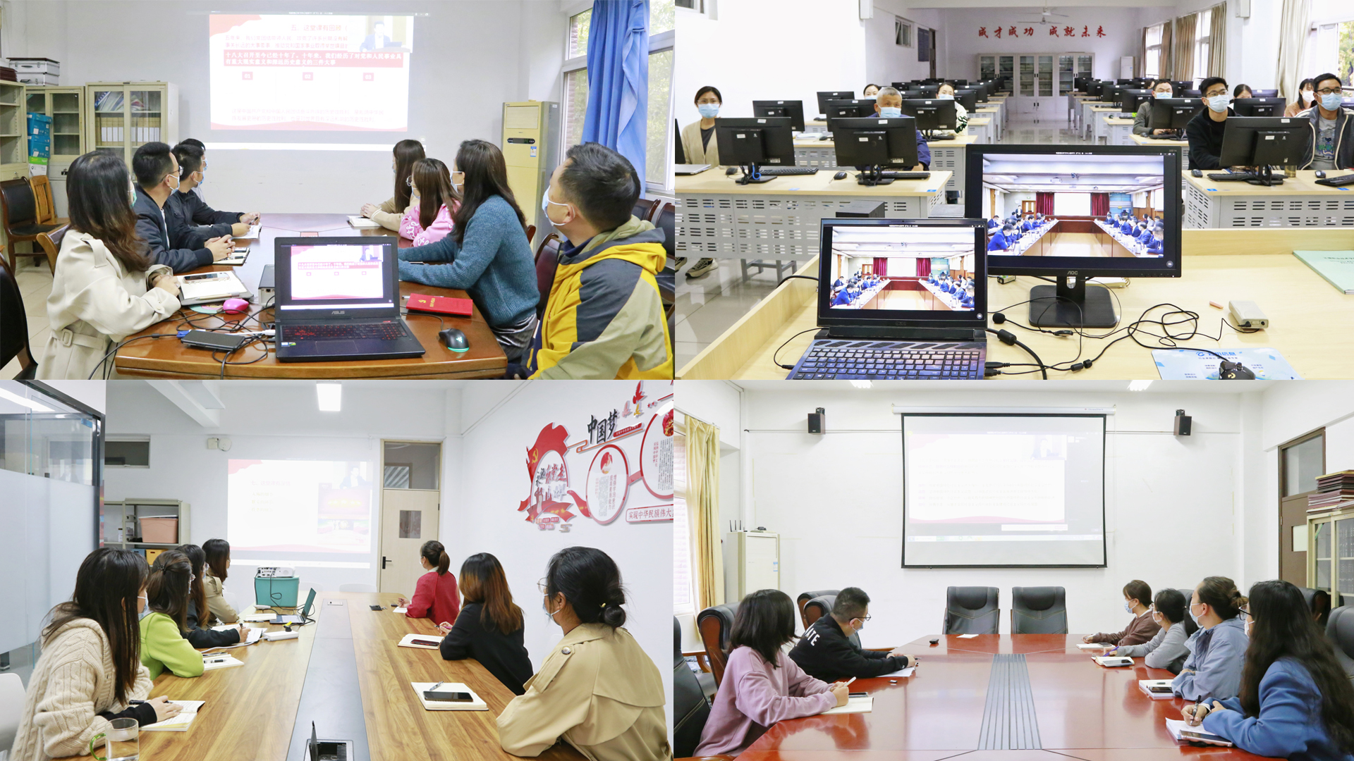 10月26日下午,天博体育 召开党委理论学习中心组学习(扩大)会,传达学习党的二十大精神。天博体育 党委理论学习中心组成员,全体中层干部,全体思想政治理论课教师、全体辅导员通过线上参加学习会。