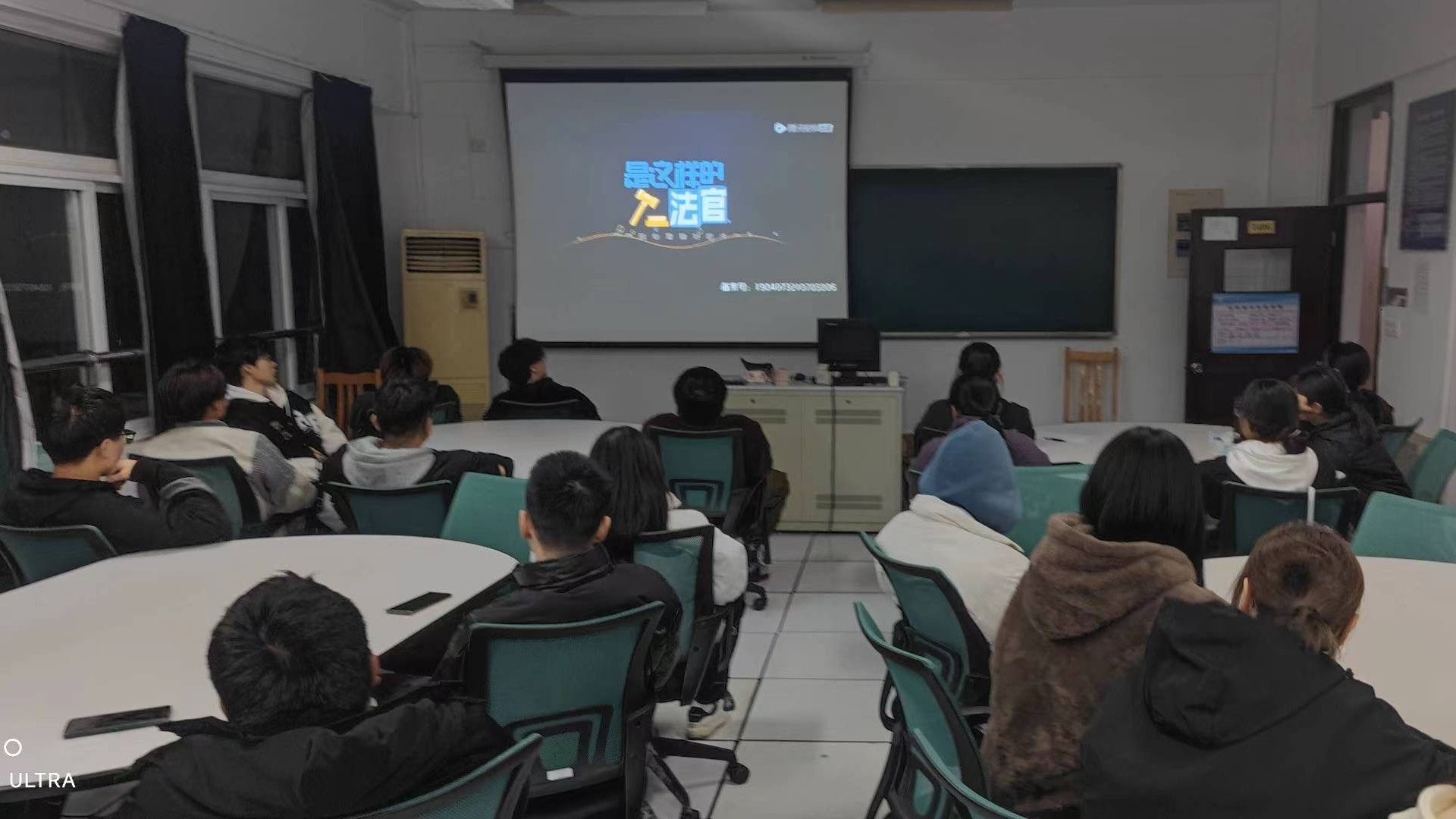 为了增强学生法律意识和法治观念,营造良好的知法、懂法、学法、用法的法制环境,进一步加强天博体育 法治宣传力度,预防天博体育 违法犯罪和意外伤害的发生。11月17日,下午5点213401班在7405 开办第二课堂之普法活动,在课堂上全班一起观看了 《是这样的法官》纪录片。