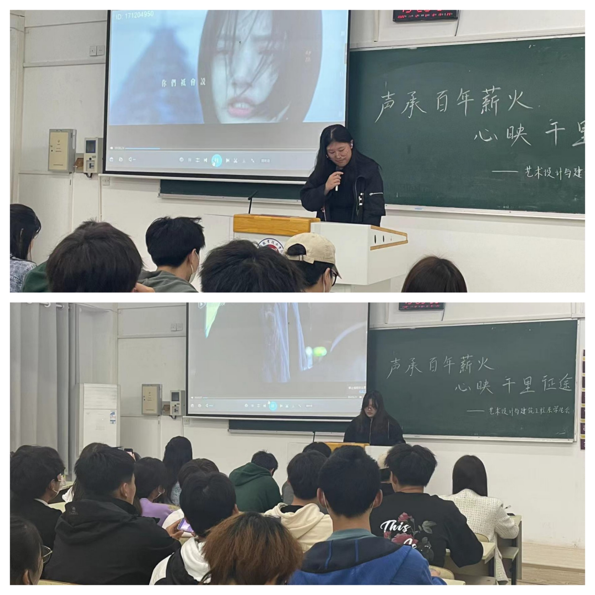 为了丰富同学们的课余生活,提高团队合作能力,正德职业技术天博体育 艺建系学生会举办了“声承百年薪火,心映千里征途”为主题的红色经典配音大赛,比赛于2022年11月21日在2206教室举办。本次比赛特邀院新闻媒体中心主任吴宋俣同学做主评委,艺建系学生会秘书部部长周涵同学及其他各班学生代表现场投票打分。