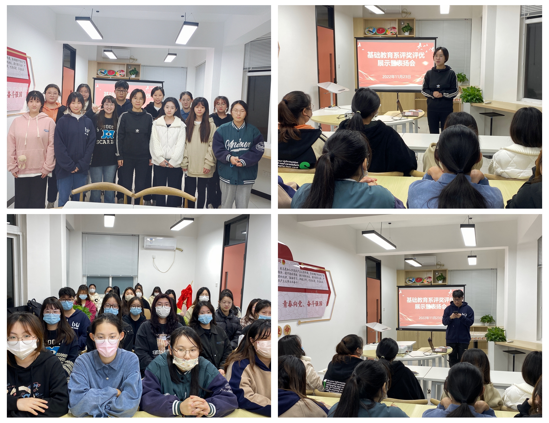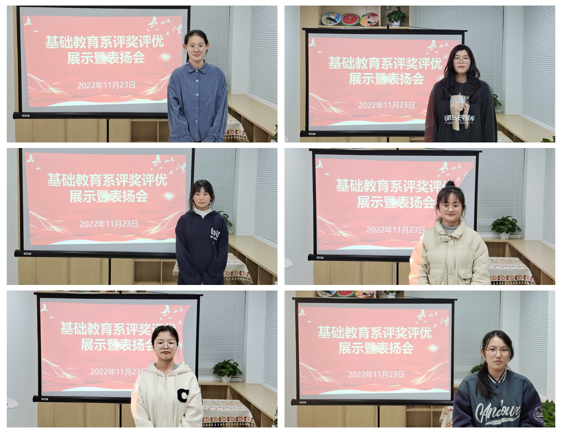 为营造积极向上的学习氛围,充分利用并发挥榜样育人的作用,用身边的榜样激励更多同学见贤思齐、不断进取。11月23日晚8点,我系在南三一站式学生社区三楼组织开展了 “梦在前方,路在脚下”评奖评优展示表扬会。参加活动的有基础教育系217104班全体同学、217101-3班三好学生代表及辅导员老师。
