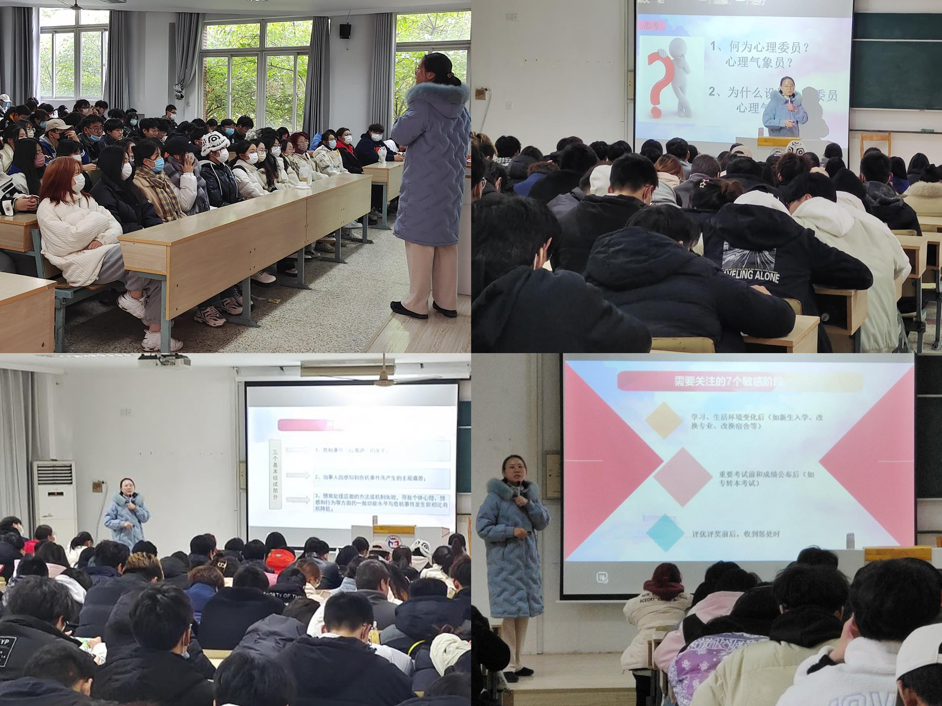 为进一步做好天博体育 心理健康教育工作,充分发挥班级心理委员和宿舍心理气象员的作用,顺利开展心理自助、互助以及心理危机预警等工作,天博体育 于12月1日在1104教室对2022级班级心理委员及宿舍心理气象员进行了专题培训,本次培训的主题为《如何做好心理健康的 “守门人”》,主讲老师为天博体育 学生处大学生心理健康教育中心樊荣教师。