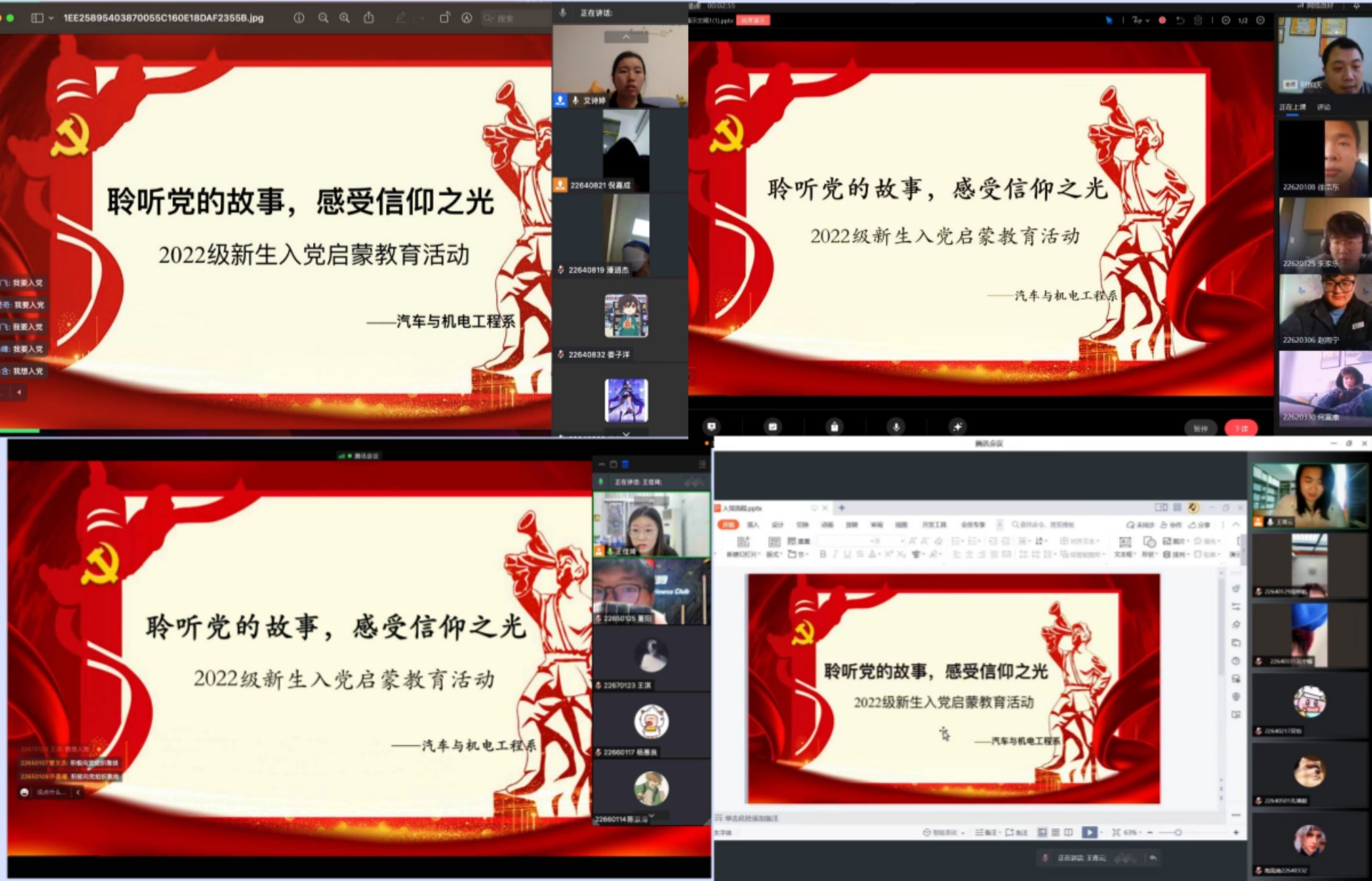 为教育引导青年大学生积极向党组织靠拢,厚植爱党、爱国、爱社会主义的情感,汽车与机电工程系党支部紧抓22级学生教育关键期,紧密结合党的二十大精神的教育,实现入党“早教育”。汽车与机电工程系党支部对22级全体学生开展了线上入党启蒙教育主题活动。