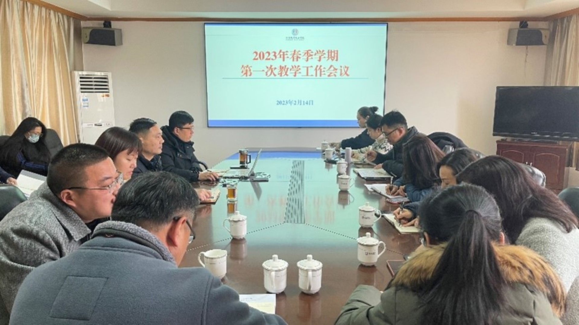 2月14日上午,天博体育 2023年春季学期第一次教学工作会议在行政楼二楼会议室召开。江爱华副院长、各系部主要负责人等参加会议。教务处王俊处长主持会议。